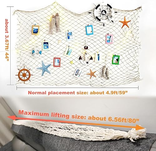 YUEXNKO Filet de Pêche Décoratif, 2pcs Filet de Pêche Décoration Murale, 100X150cm Filet de Peche Decoration, Filets De Pêche De Style Méditerranéen, Filet de Pêche Plage Thème Décor