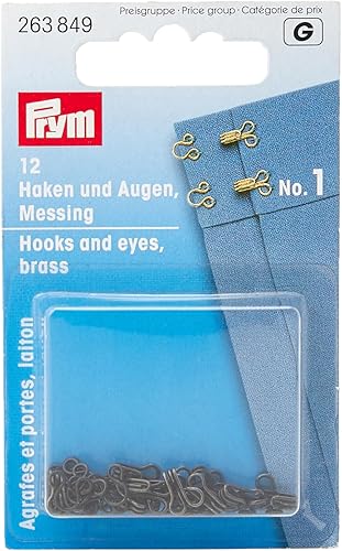 Prym Laiton No.1 Crochets Et Yeux 12 Pièces, Taille 12 mm, Noir