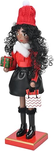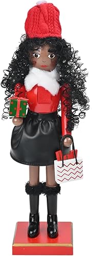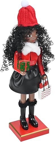 Jiqoe Figurine de Noël en bois pour femme casse-noisette avec cheveux bouclés Décoration artisanale