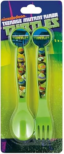 ALMACENESADAN, 5090 Lot de 2 couverts réutilisables, idéal pour le quotidien comme pour célébrer vos fêtes, sans BPA, couvert et fourchette, sous licence (Tortues)