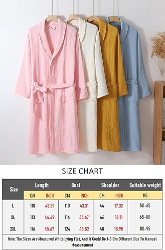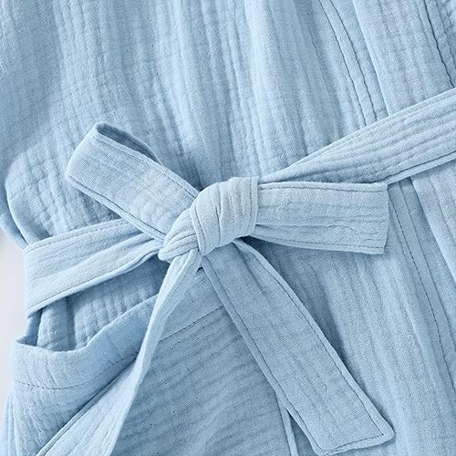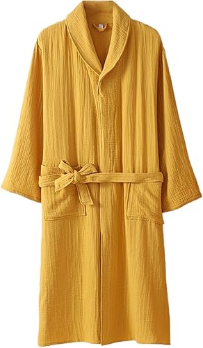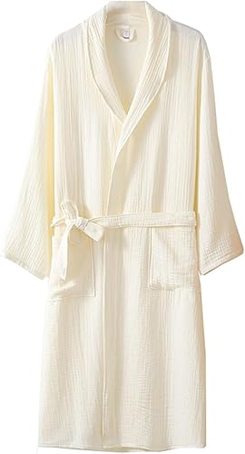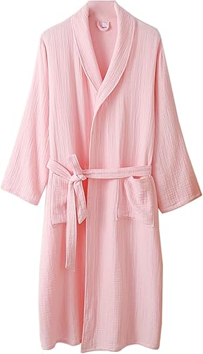 Peignoir en coton pour femme, col châle, kimono, robe de spa, gaze triple épaisseur, pyjama, chemise de nuit
