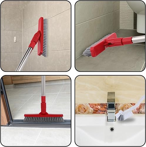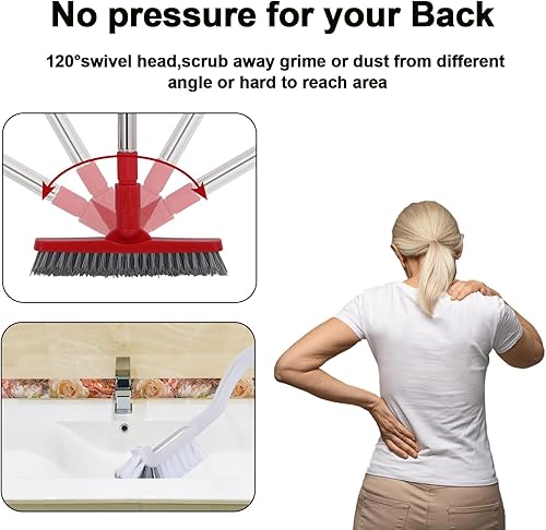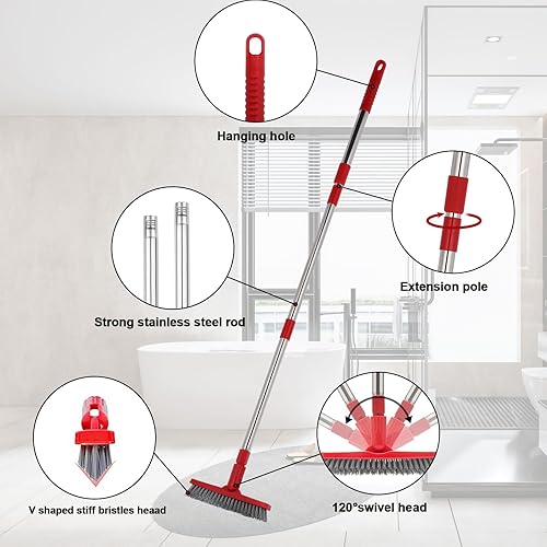 GINZER Ensemble de brosses à joints avec manche long réglable à poils rigides, brosse rotative en forme de V pour joints de carrelage de salle de bain, cuisine et cônes nettoyés durement