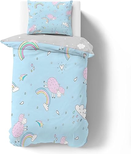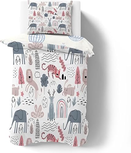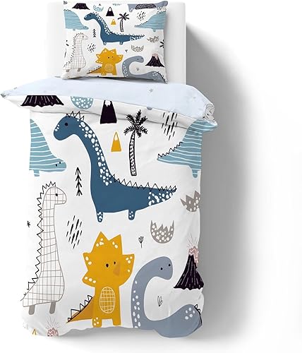 phonxia Housse de Couette Junior 120 x 150 cm Garçons et Filles Impression Réversible d'un Dinosaure Bleu pour Enfants Parure de lit 120x150cm et Taie d’Oreiller pour Junior Bas Âge