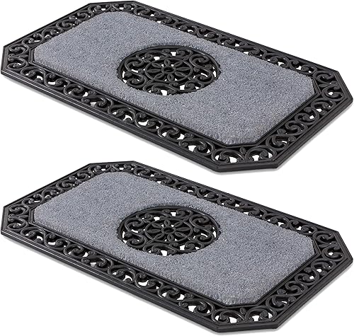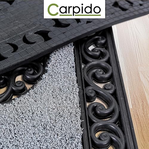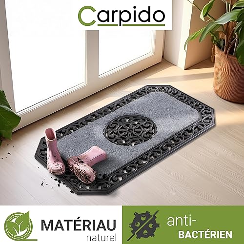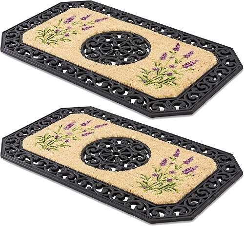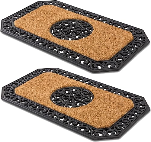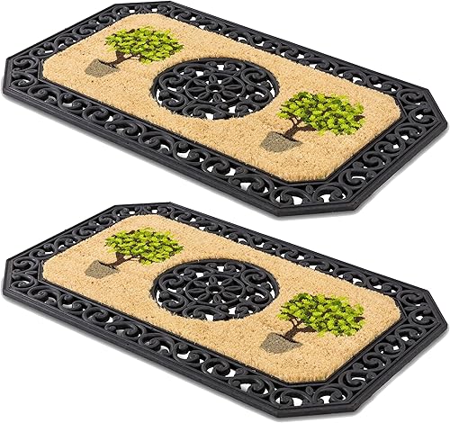 Carpido Paillasson Beige Arbres Ronds - Débouchage 45x75 cm Lot de 2 - Tapis de Porte intérieur - Tapis d'entrée extérieur Couvert - Tapis Coco avec Bord Caoutchouc