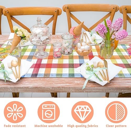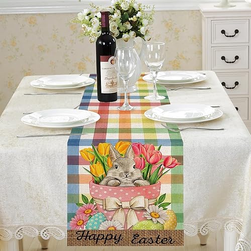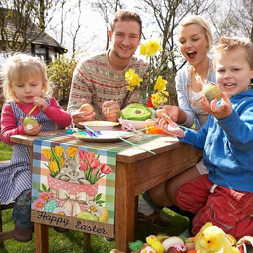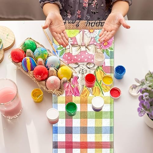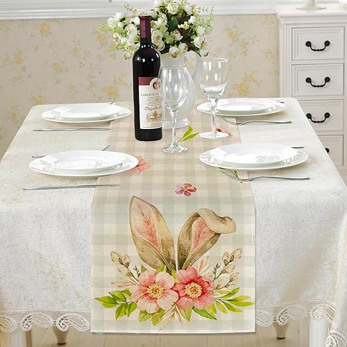 FairyPeach Drapeau Table Pâques, Lapin de Pâques Nappe, Décoration Saisonnière de Printemps, Printemps Decoration Table Paques, Nappe de Pâques en Lin, Pâques Chemin de Table (Lapin Oreilles)