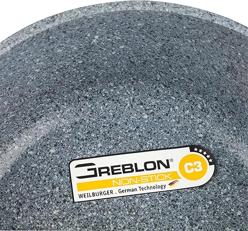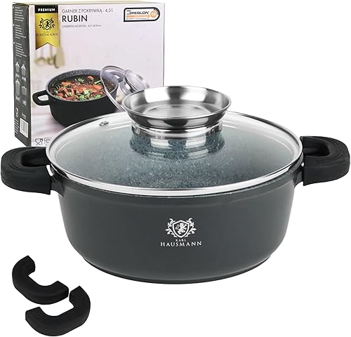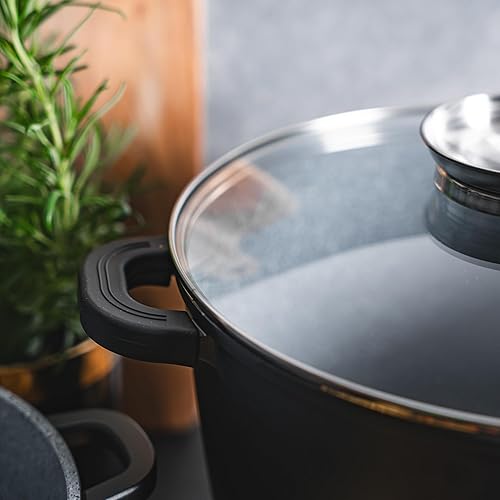 Marmite à soupe avec couvercle en verre, convient pour tous les types de cuisinières, y compris l'induction, revêtement anti-adhésif, revêtement en granit GREBLON C3+, 4,4 litres/Ø 24 cm