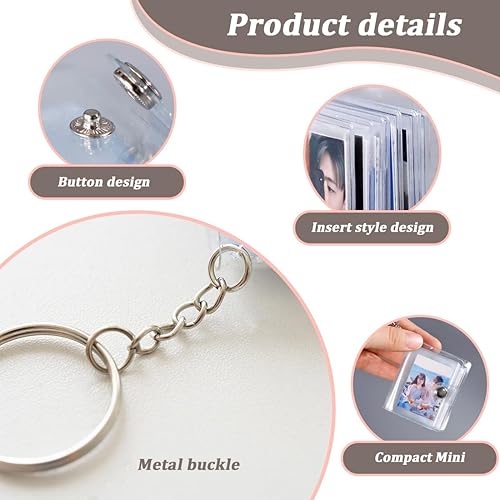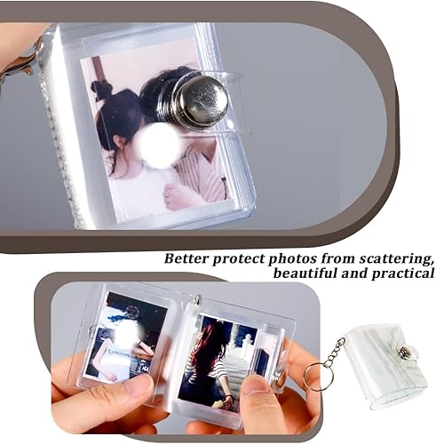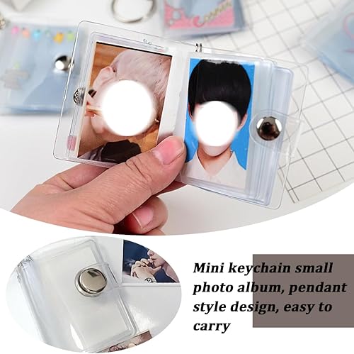 VOMZIKL 2 Pièces Mini Porte-clés Album Photo, Mini Album Photo Porte Clef Porte-Clés Album Photo, Mini Album Photo Porte Clef Mini Petit Album Photo de 2 Pouces Stockage, avec 20 Poches