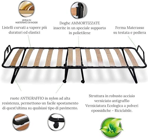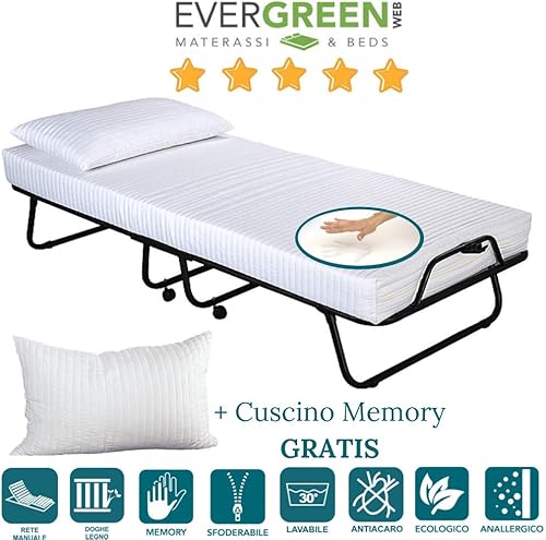 Evergreenweb - Lit Pliable d'appoint Simple avec Matelas Blanc a memoire de Forme 80x190 avec oreillers en memoire Gratuit, sommier à Lattes Confortable en Bois et Roulette, orthopédique, pour invité