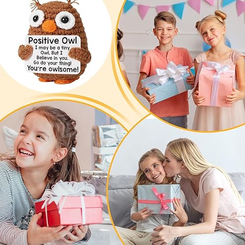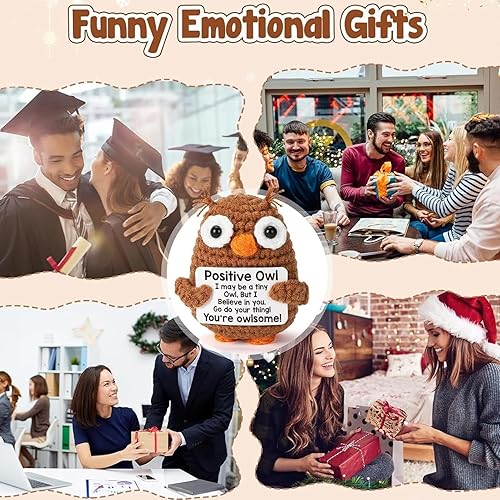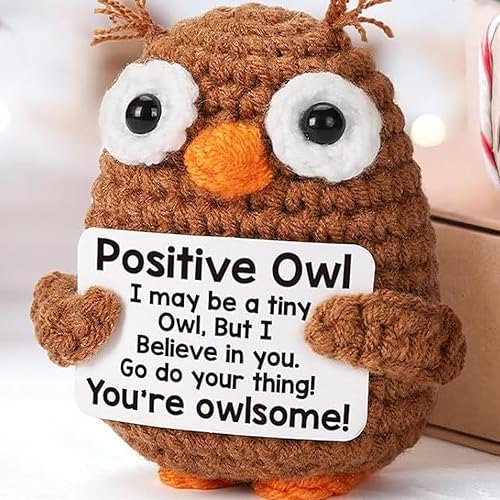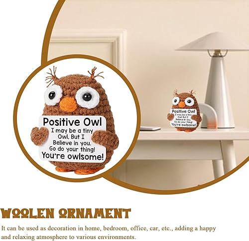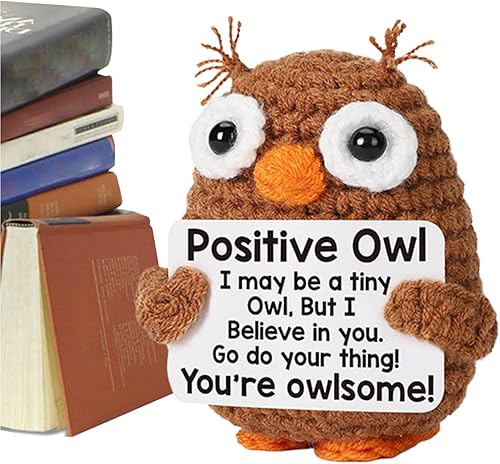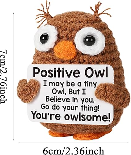Animaux positifs au crochet - poupées de soutien émotionnel | Crochet Owl Doll with Card Motivational Crochet Animals | Mignon de support émotionnel Doll de soutien pour les bureaux pour bureaux étagè