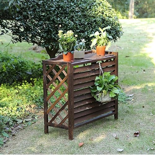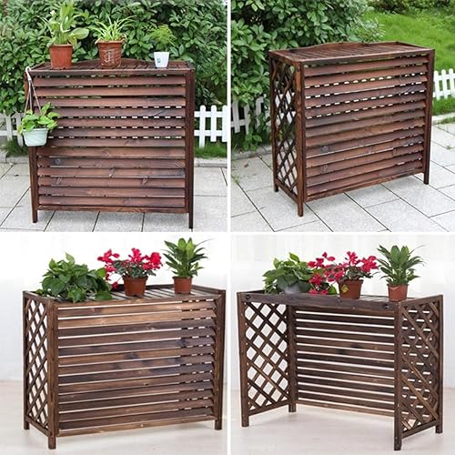 Cache Climatiseur Exterieur Bois, Couverture De Climatiseur À Persiennes Protection Extérieures, Bois Massif Support De Fleurs À Persiennes, Couvercle De Climatiseur Étanche, Anti-Poussière, Antivol (