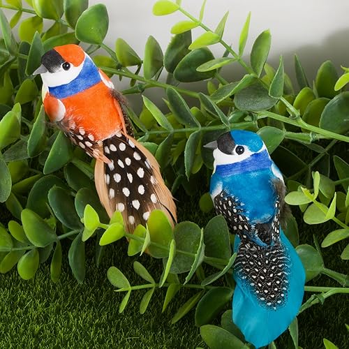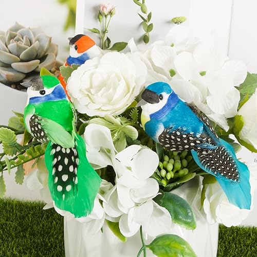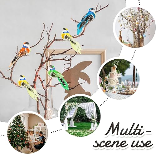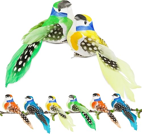 8pcs Petits Oiseaux Artificiels à Suspendre avec Clip Ornement Oiseau Artificiel avec Pince 3D Jaune Bleu Orange Vert en Mousse Décoration Loisirs Créatifs pour Jardin Bricolage Artisanat Fête