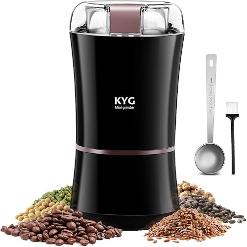 KYG Moulin à Café Électrique 300W, Broyeur à Graines de Lin, Noix, Poivre, Épices, Semences de Café et Autres avec Lames en Acier Inoxydable