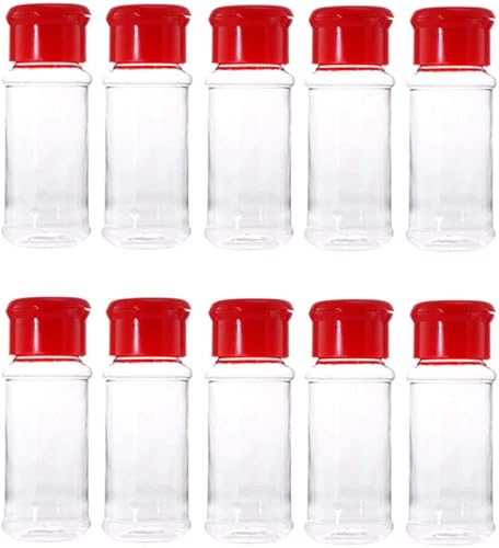 BESTONZON Lot de 10 Pots à épices en Plastique pour assaisonnement, poivrière, sel, Condiment, pour Barbecue Cuisine (Rouge)