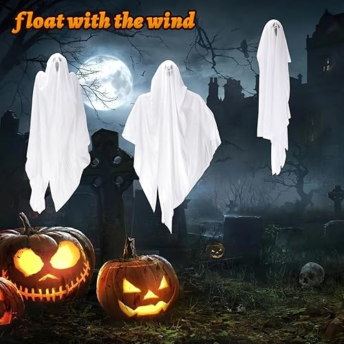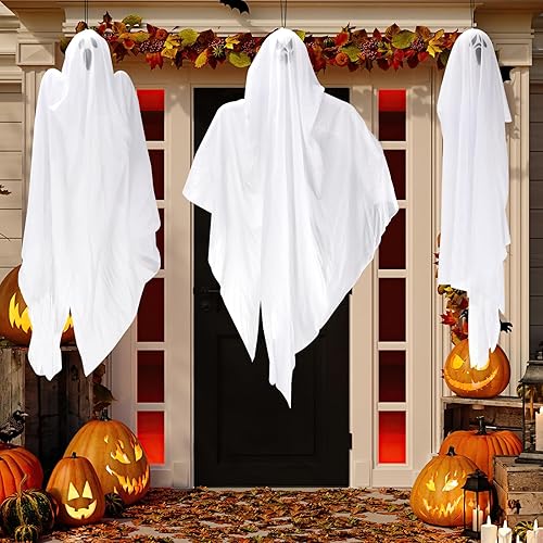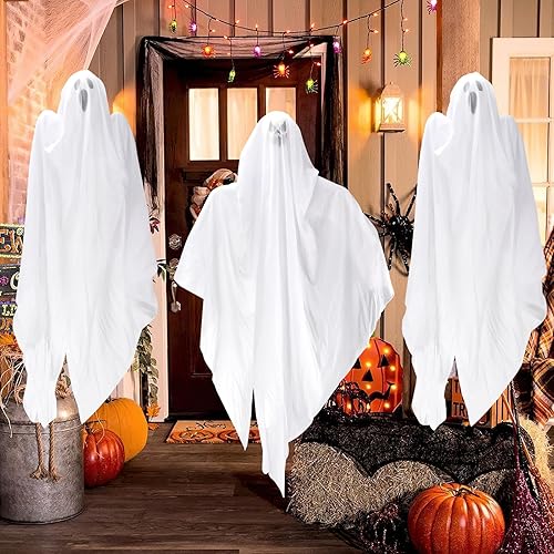 3PCS Décorations de fantômes en Plein air, Halloween Suspendus fantôme décoration, fantômes Blancs à Suspendre, Halloween Fantôme Decoration pour Garden Party décor et décorations de Vacances