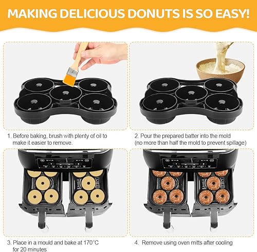 Accessoires de friteuse à air chaud - Moule à donut en silicone compatible avec Ninja AF300EU, AF400EU, AF451EU, SL400EU, AF500EU et autres friteuses à air chaud double, réutilisable et sans BPA