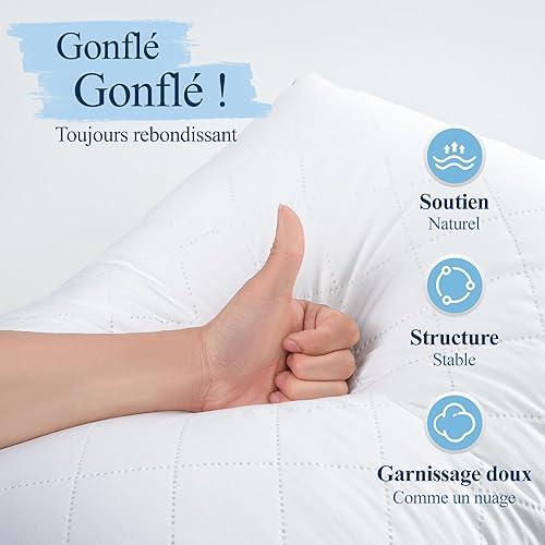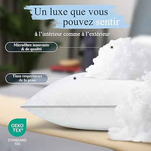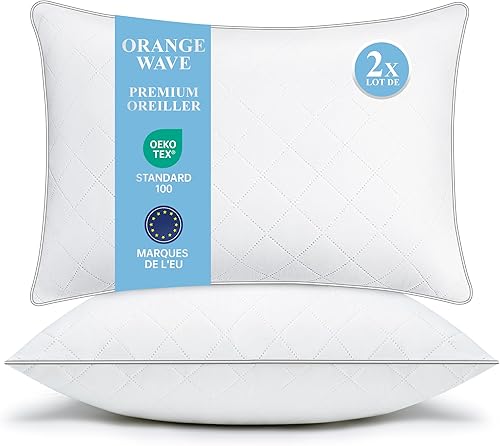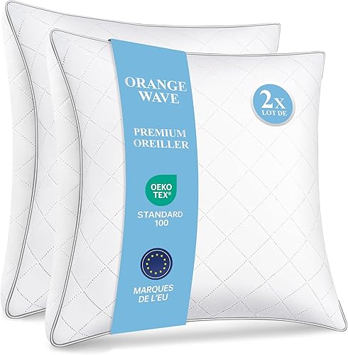 Orange Wave Oreillers 60x60 cm Lot de 2, Oreiller en Microfibre Moelleux, Hypoallergénique, Lavable, Oreillers Qualité Hotel Idéal pour Dormeurs sur Le Côté et Le Dos, Coussin Respirant et Doux
