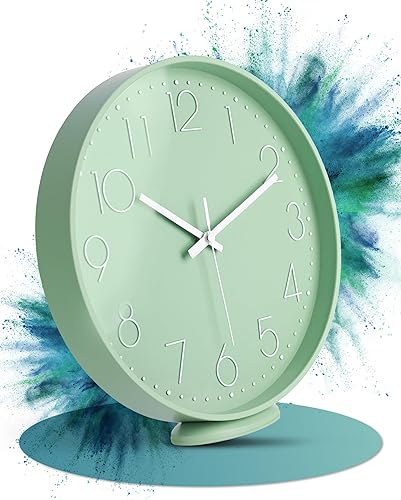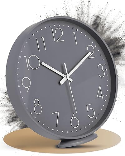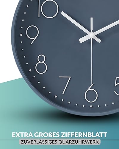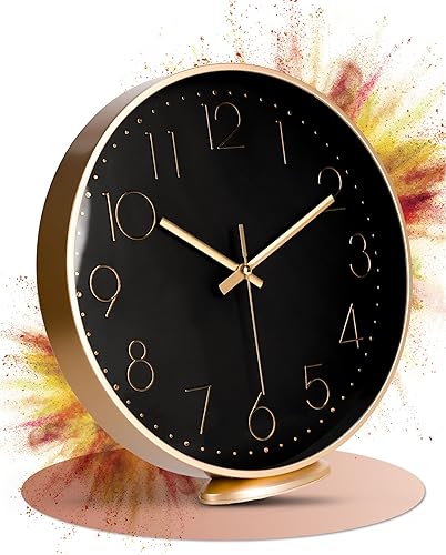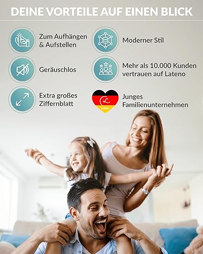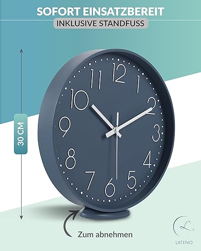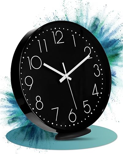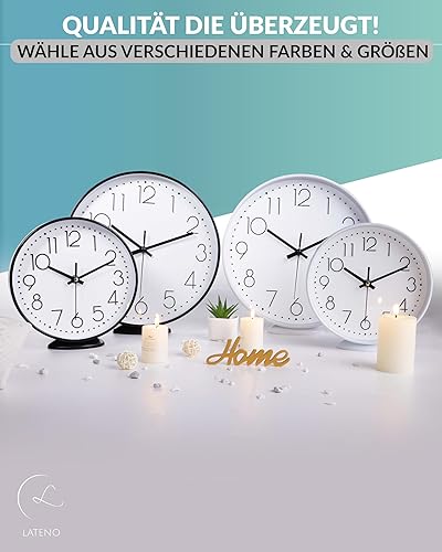 LATENO - Horloge murale à poser ou à suspendre - Noire - 20 cm - Silencieuse - Classique et moderne - Sans bruit de tic-tac - Pour salon