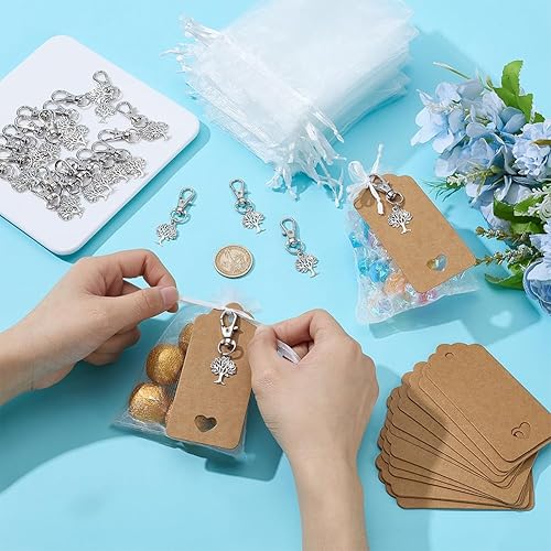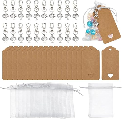 AHANDMAKER Lot de 24 porte-clés arbre de vie avec cartes de remerciement et sacs en organza, connecteur arbre de vie pour la fabrication de bijoux, cadeaux de communion, cadeaux de famille, décoration