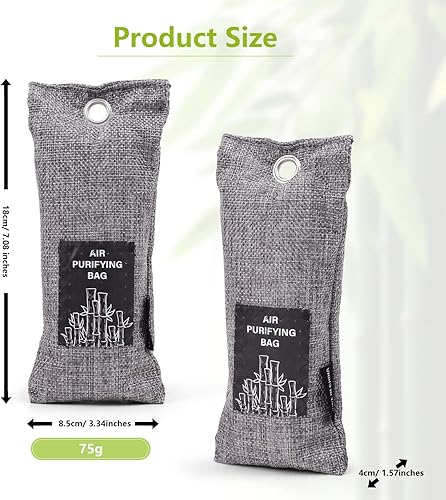 Désodorisant pour Chaussures, Sac Charbon Actif de Bambou, Absorbeur d‘Odeurs et d‘Humidité, Sac de Purification d'air, Déshumidificateur Naturel pour Meuble à Chaussures (2 x 75 g) Cadeau de Noël