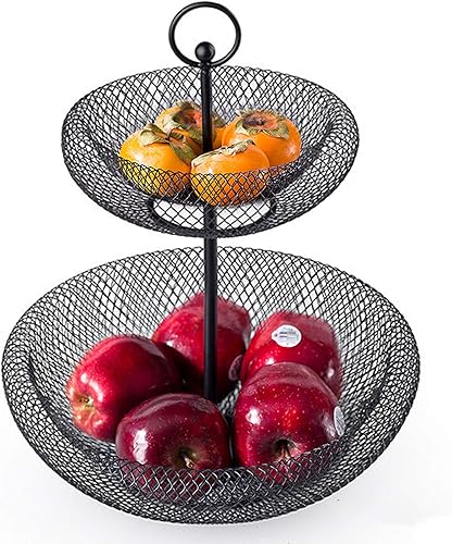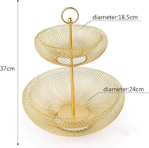 Corbeille A Fruit 2 Etages, Support à Fruits et Légumes, Panier A Fruits A Etages en Métal Décoration Plan de Travail - Coupe de Fruit Design – Noir/Doré,Gold