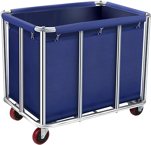 Chariot à linge commercial sur roulettes, 11,35 buissons, grand rouleau avec panier amovible doublé en toile imperméable, acier inoxydable robuste pour hôtels et hôpitaux