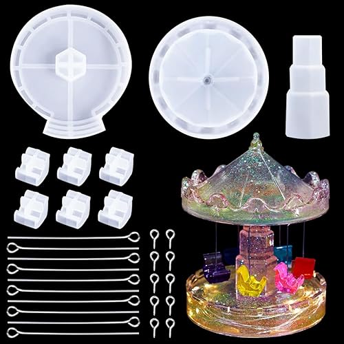 DeryArcle Moule Resine Carousel Moules Resine Epoxy Manège Silicone Moulle Cheval Moulage de Coulée pour Fabrication Ornement de Bureau Décoration de Maison Mariage Fête (Carousel Moule)
