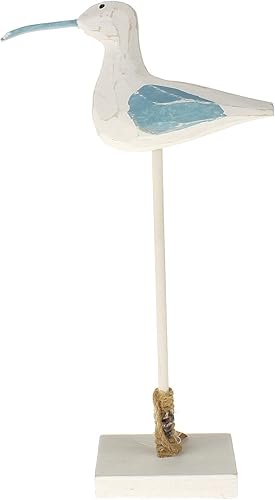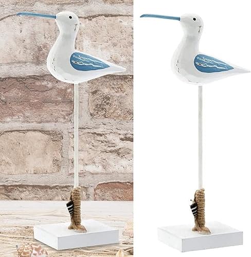 Macosa CP53321 Mouette décorative en bois sur pied en bois Blanc/bleu 28 cm Décoration de salle de bain Décoration de salle de bain Oiseau décoratif Mouette en bois Décoration de salle de bain