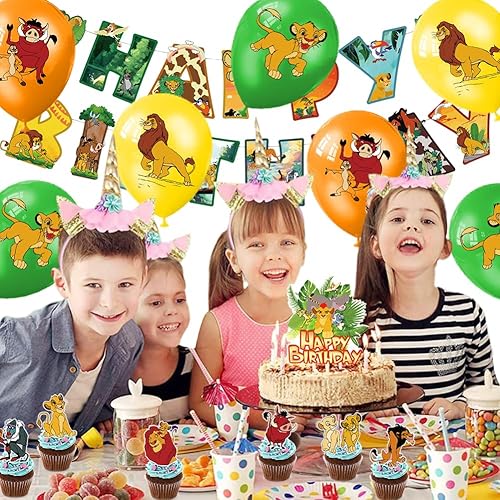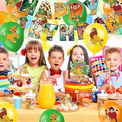 36PCS Le Roi Lion Party Decoration Le Roi Lion Birthday Party Balloon Set Le Roi Lion Tirant Le Slip Gâteau De Gâteau Dans Le Ballon De Traction De Fleur