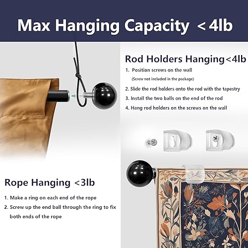 Tringle télescopique à suspendre pour tapisserie, décoration de chambre, barre de suspension murale évolutive (43,2 à 81,3 cm, noir)