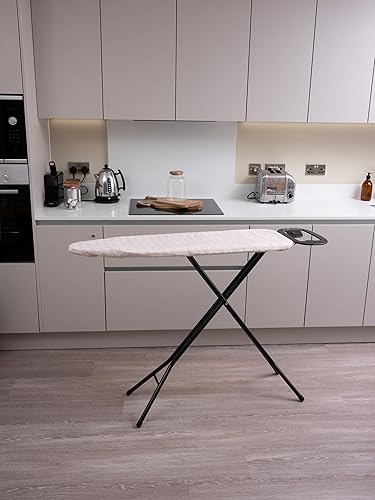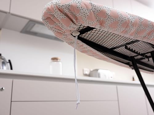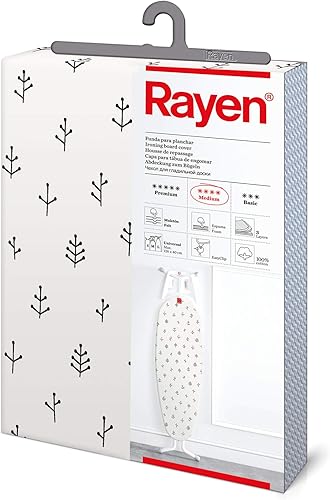 Rayen | Housse pour Table à Repasser Universelle | 3 épaisseurs: Mousse, Molleton, Tissu qualité Canevas | Gamme Medium de 130x47 cm, Blanc cassé avec Branches