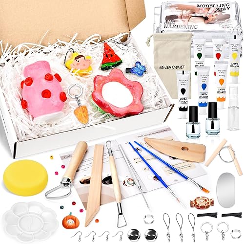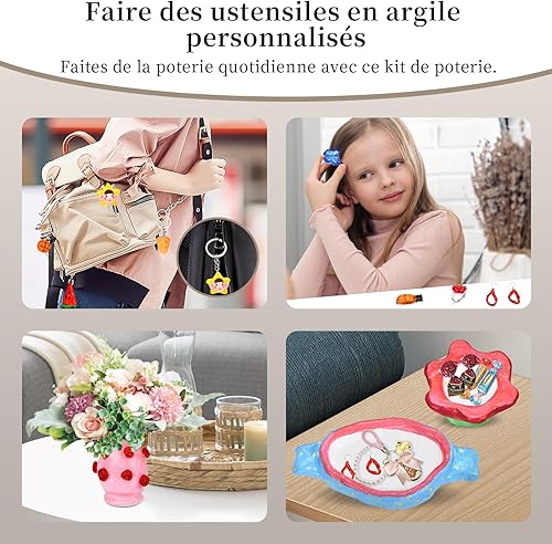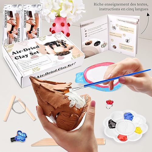 Herenear Kit de Poterie en Argile pour la Maison, Kit Argile Autodurcissante pour Débutants, Cadeau pour les Amateurs de Poterie Artisanale, Cadeau Créatif (Kit de Poterie)