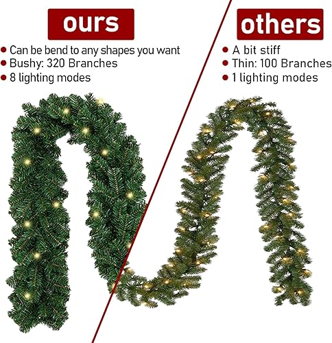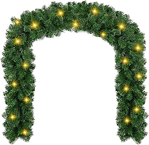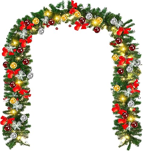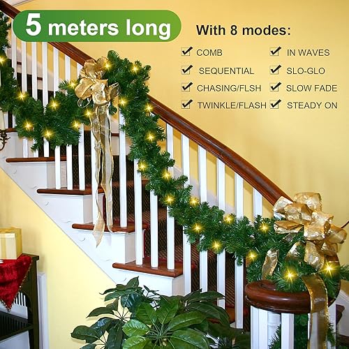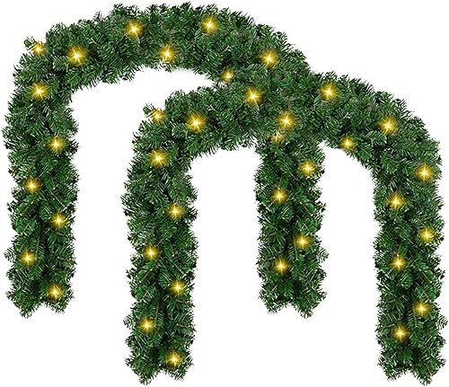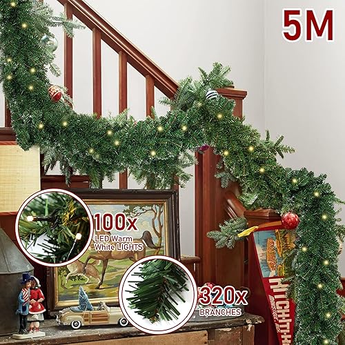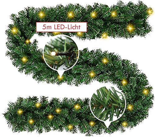 SWANEW Guirlande Sapin Artificiel, 5m Guirlande de Noël Vert avec 100 LEDs Blanc Chaud, y Compris la décoration, pour Les décorations d'escaliers et de cheminées de Noël (2 pièces)