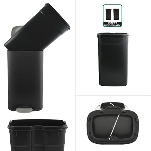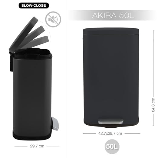 Spirella, Poubelle à pédale 50 Litres en Acier Inoxydable, Modèle Akira, Finition matte élégante et moderne, Fermeture lente et silencieuse, Revêtement anti-traces de doigts, Noir Mat