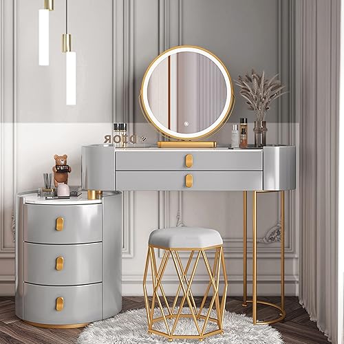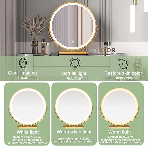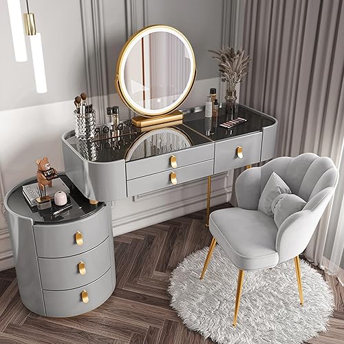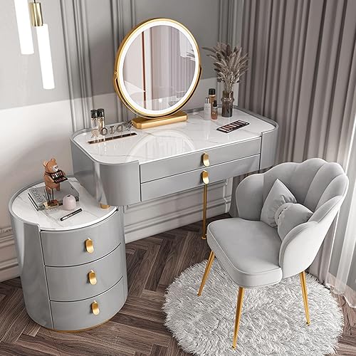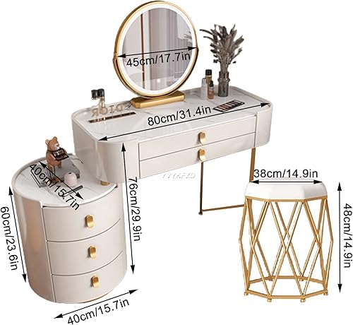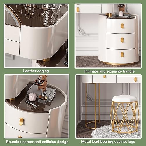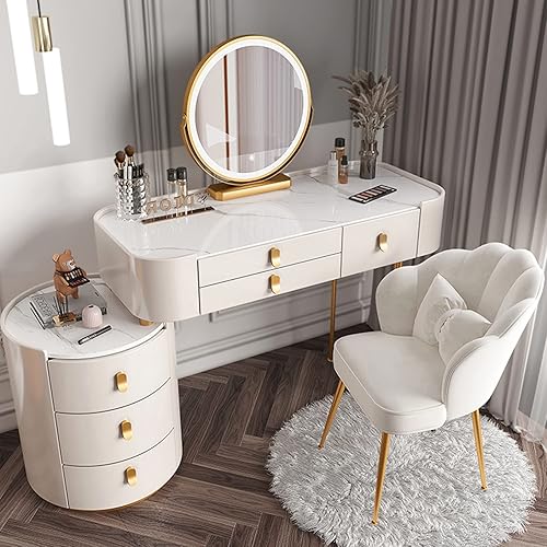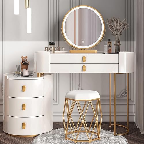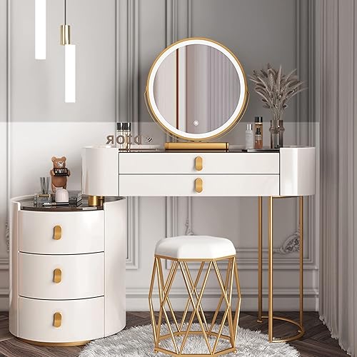 Coiffeuse Avec Miroir Éclairé Par LED, Table De Maquillage Avec Tiroir Et Tabouret Rembourré, Coiffeuse De Maquillage Moderne Avec Miroir À Luminosité Réglable, Pour Chambre À Coucher ( Color : White