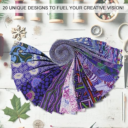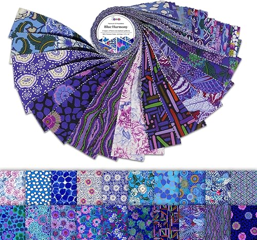 Soimoi Jelly Roll Bandes de tissu pour matelassage,tissu prédécoupé pour bricolage, lot de 40 bandes assorties, rouleau de gelée pour scrapbooking, tissu de matelassage pour la couture-Harmonie bleue