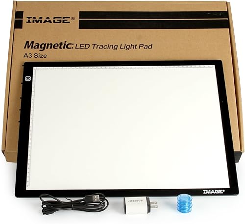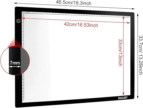 IMAGE Tablette Lumineuse Magnétique LED A3 à Luminosité Réglable Tablette à Dessin Mince 7MM avec USB et Fonction de Mémoire pour Enfant/Adulte Diamant Painting/Croquis/Esquisse/Calligraphie