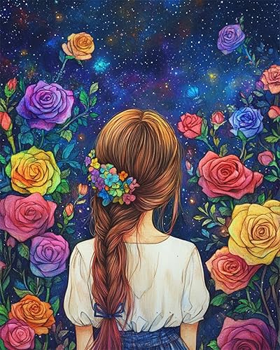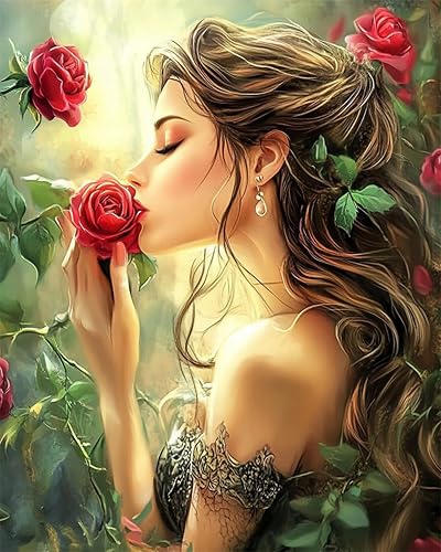 Diy 5D Tableau Diamant Femme Et Roses Rouges Kit D'Art En Diamant,Perceuse Ronde Complète,Dessin En Cristal,Broderie De Diamants Pour Décoration Murale De Maison 40x50cm