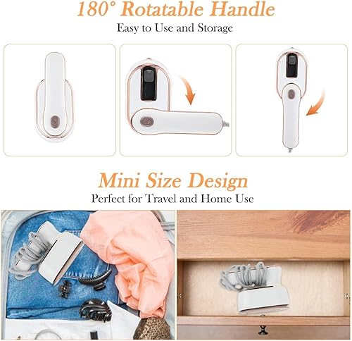 Fer à repasser de voyage portable 1000 W, fer à vapeur pliable, chauffage rapide 10 secondes, mini fer à vapeur pour la maison et les voyages, blanc