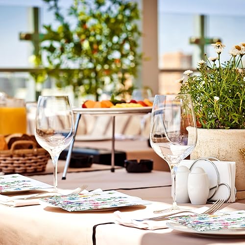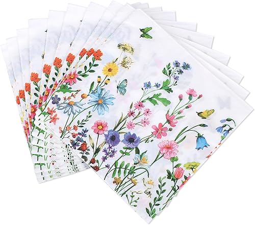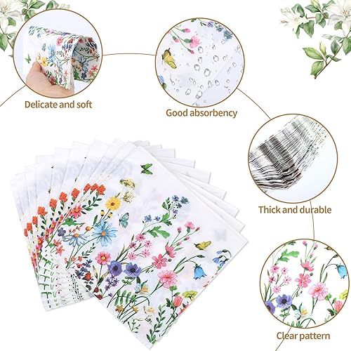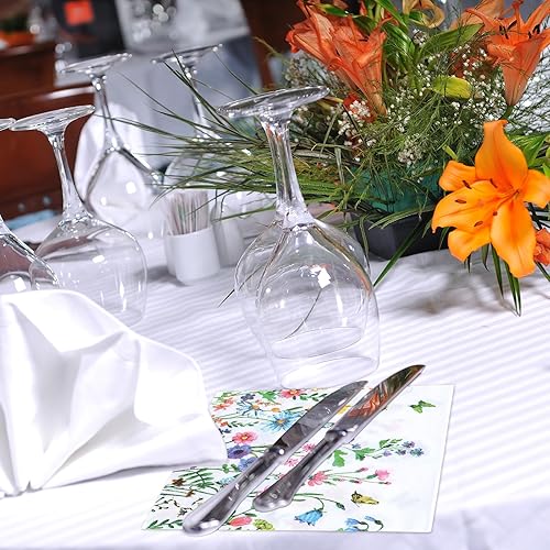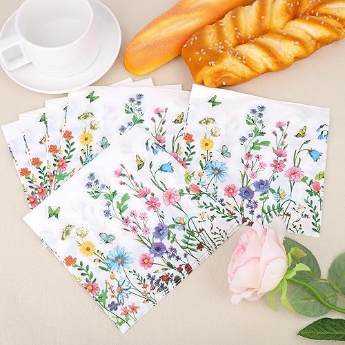 BOXOB 60pcs Serviettes en Papier Colorées à Motifs de Fleurs Sauvages, Motif Floral Motif Fleur de Printemps Papillon Décoration Table Fête pour Mariage Dîner Cuisine Anniversaire