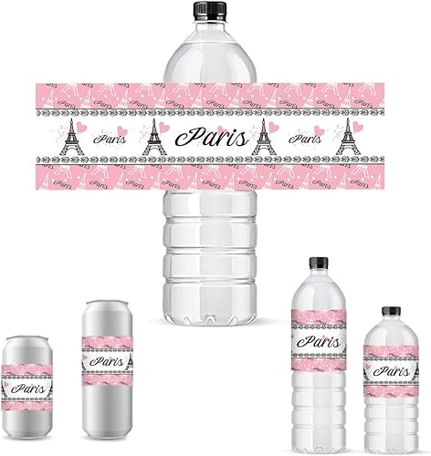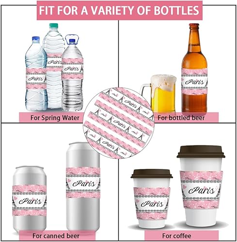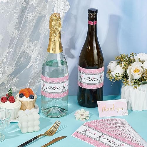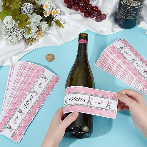 PH PandaHall 30pcs Étiquettes de Bouteille D'Eau, Autocollants de Bouteille Tour de Paris Emballages de Bouteilles Roses Décoratifs Emballages de Bouteilles Imperméables pour Cadeaux de Fête