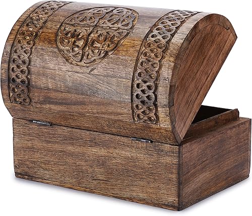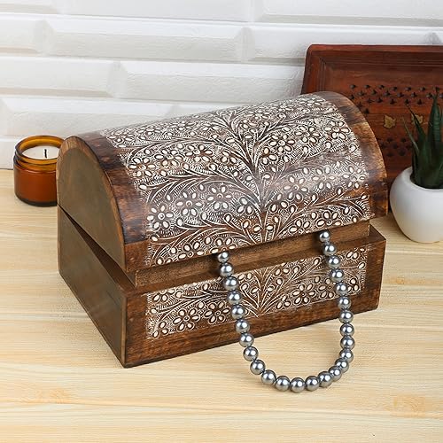 Ajuny Boîte de Rangement en Bois pour Bijoux et Souvenirs Motif Floral Décoratif Traditionnel Fait à la main pour Colliers Bracelets Montres Bijoux Coffre au Trésor Organisateur Cadeau - 9x6 pouces