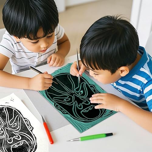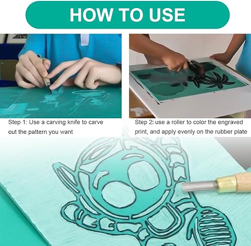 Ruioomeep Lot de 2 plaques A4 en caoutchouc souple pour gravure, tampon en caoutchouc lino, plaques de lino vertes, plaques de lino en PVC pour tampons en caoutchouc, travaux manuels et projets