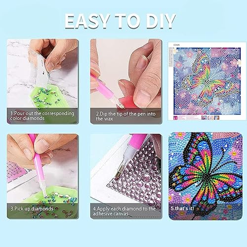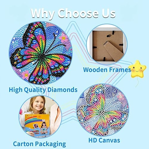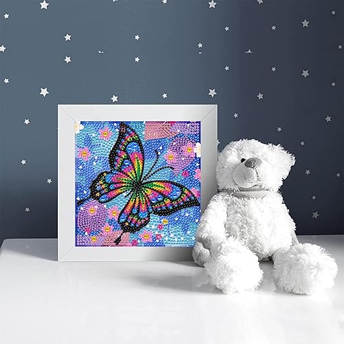 HecticCore Diamond Painting Enfant Papillon, 5D DIY Broderie Diamant Kit Complet avec Cadre en Bois, Peinture Diamant pour Enfants Filles Adultes Diamant Painting Arts Craft pour Décoration Murale