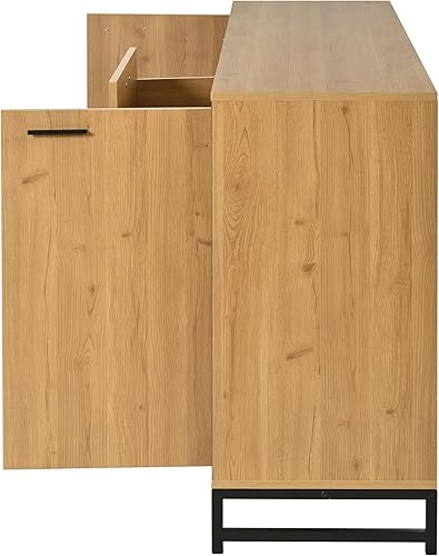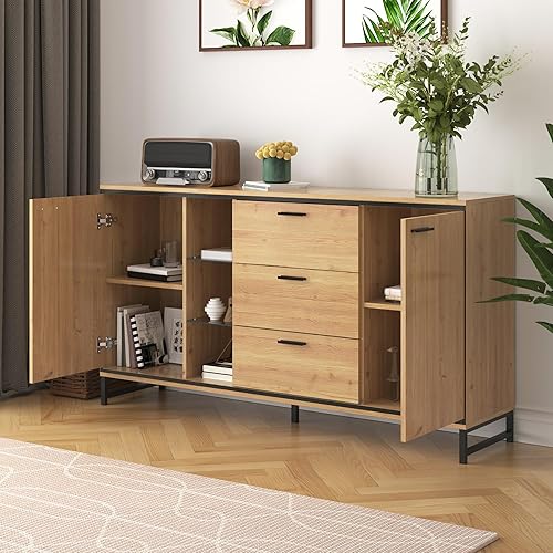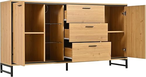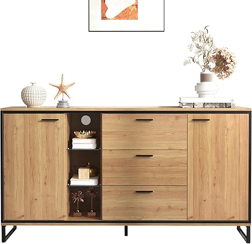 AEMOING Buffet à trois tiroirs, grain exquis, buffet moderne de couleur bois avec compartiments de rangement – Meuble de salon élégant et fonctionnel. Noir et couleur bois