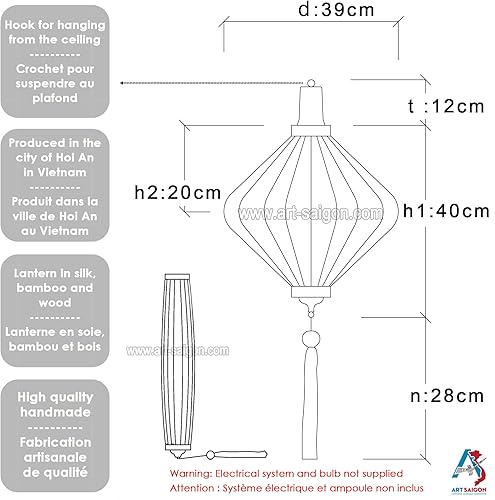 Lanterne Lampion Asiatique en Soie Rouge - Lustre Suspension Traditionnel de Hoi an en Tissu, Bambou et Bois - Décoration et Artisanat du Vietnam (T25-R)