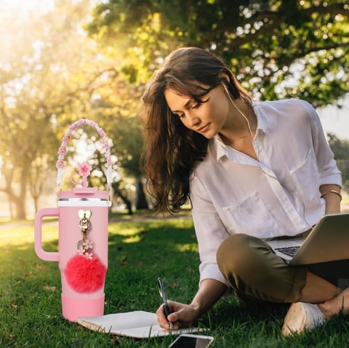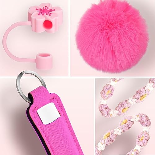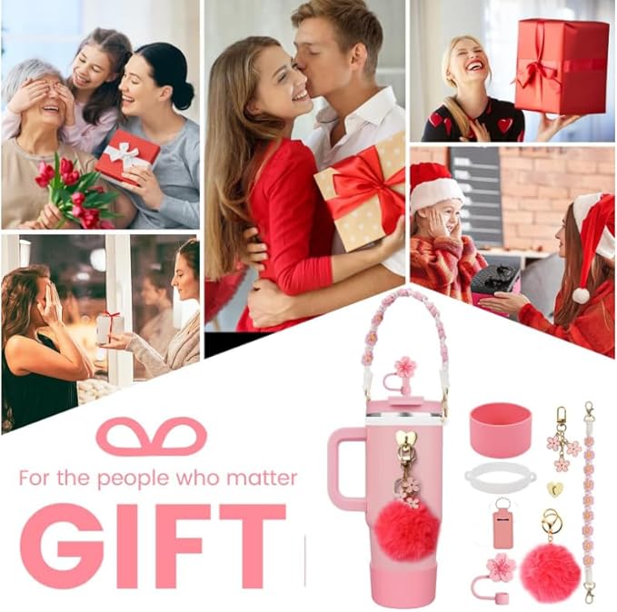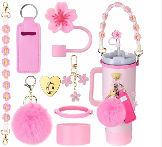 Lot de 8 accessoires de tasse Stanley de 1,2 l pour tasse de voyage Stanley, kit de bricolage comprenant siliocne pour bouteille d'eau Stanley, sangle, couvercle de paille (rose)