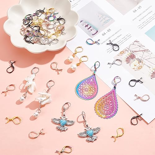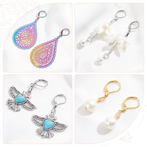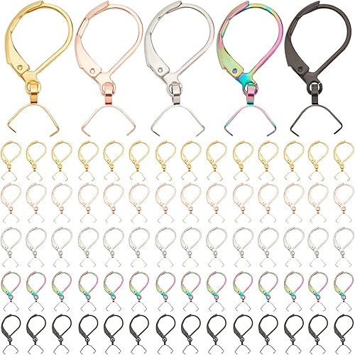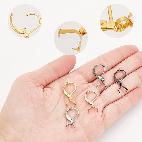 WEBEEDY 50pcs Crochets de Boucle d'oreille Français en Acier Inoxydable, Fils d'oreille à Levier 5 Couleur pour la Fabrication de Boucles d'oreilles de Bijoux à Bricoler Soi-Même