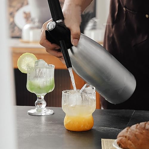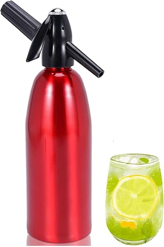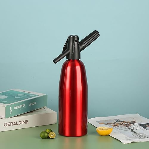 1L Siphon à soda, Machine à Faire du Soda, machine à eau portable pour eau gazeuse, Bouteille de Siphon à Soda avec régulateur de pression, pour jus de Fruits Maison,Mojitos,Cocktails,Boissons (Rouge)