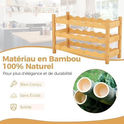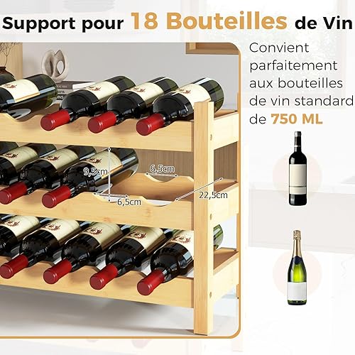COSTWAY Casier à Vin en Bambou pour 18 Bouteilles à 3 Niveaux, Casier à Bouteilles, Étagère à Vin, Range Bouteille sur Pied, pour Cuisine, Garde-Manger, Pub, Cave à Vin, Naturel