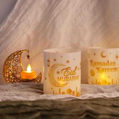 12pcs Eid Mubarak Photophores Décoratifs de Table Lune Étoile Or Blanc Photophore Bougeoirs Cadeau Décoration d'Intérieur et d'Extérieur pour Bougies Fête Aïd